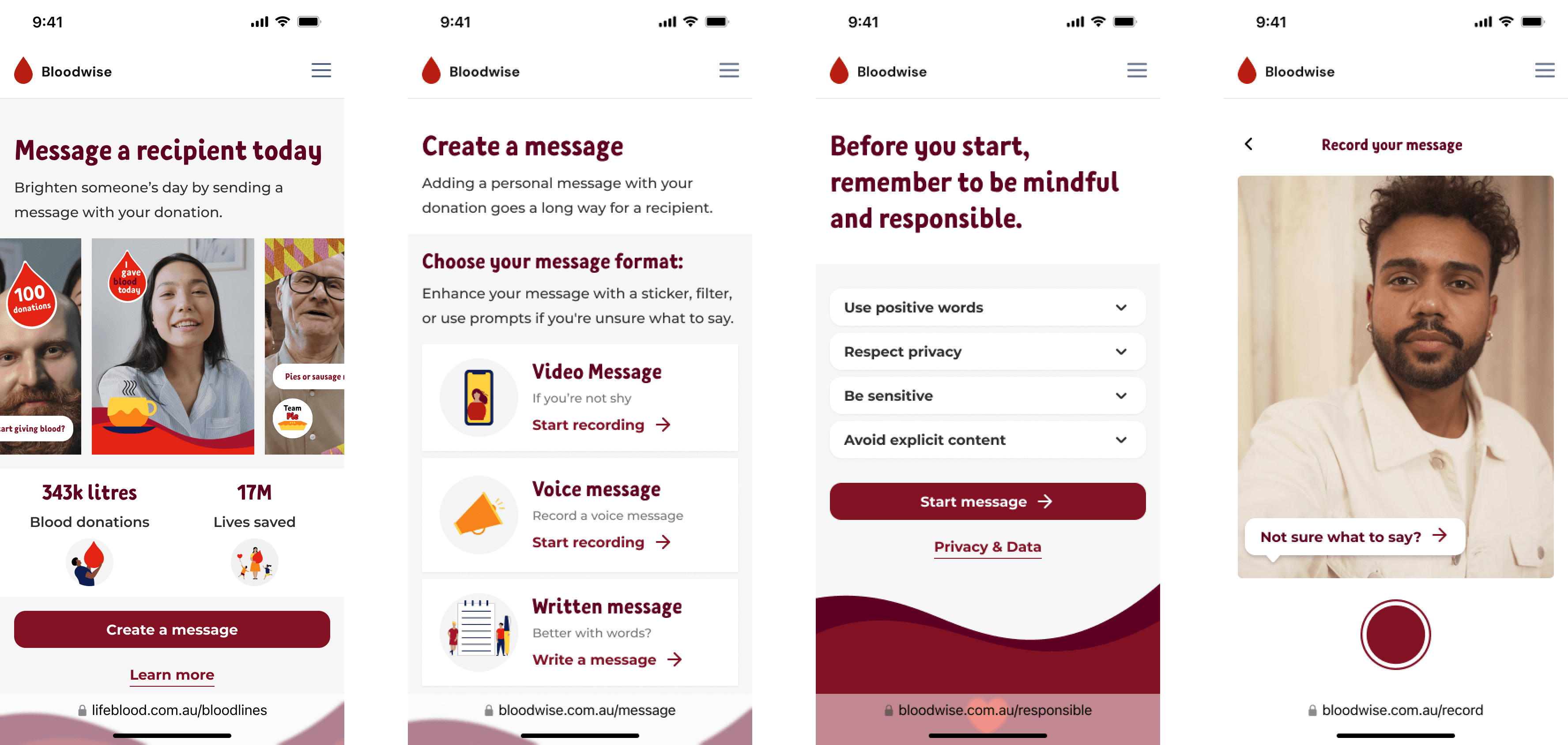 A web app that enables blood donors to create and send personalised messages to recipients based on their communication preferences. This initiative also yielded deeper insights into donor behaviours, laying the groundwork for building a stronger, more engaged community.
